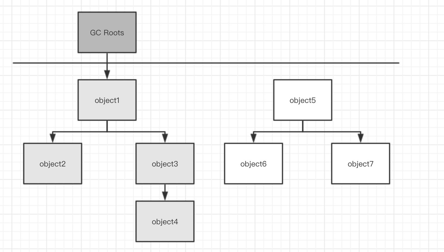 例如下图的object1、object2、object3、object4就是从GC Roots可达的,不能被回收。而object5、object6、object7虽然相互引用,但从GC Roots不可达,证明程序中无法访问到它们,所以它们是无用的,可以被回收。