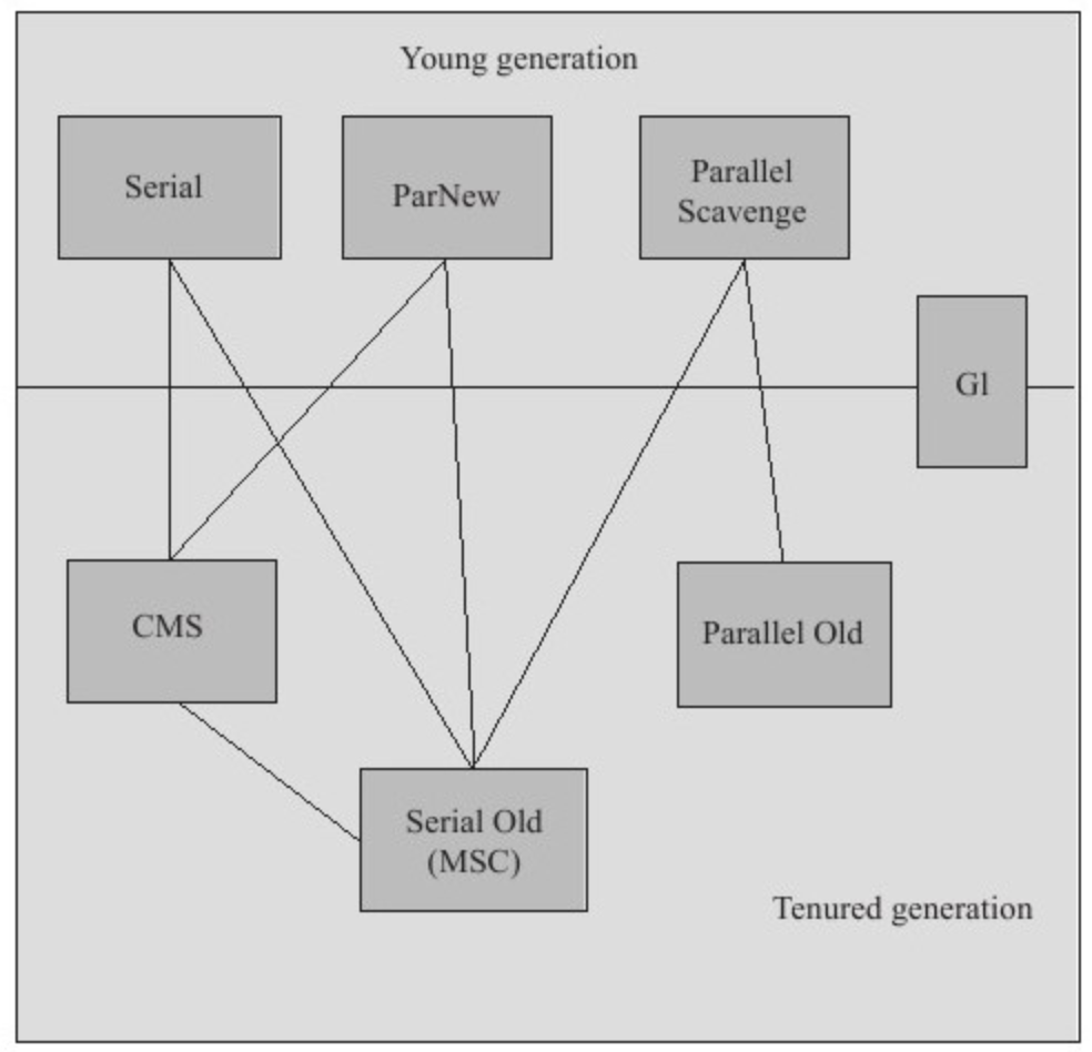 每种收集器具体的实现方法这里我就不罗列了,感兴趣的同学可以自行搜索。