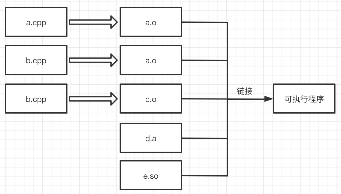 代码通过前面的预处理、编译、汇编之后就生成了包含机器指令的.o文件,一个.c或者.cpp文件就会生成一个.o文件。每个.o文件都只有自己那部分的代码,需要将他们合并到一起才能组成一个可执行程序,这个合并的过程叫做链接。