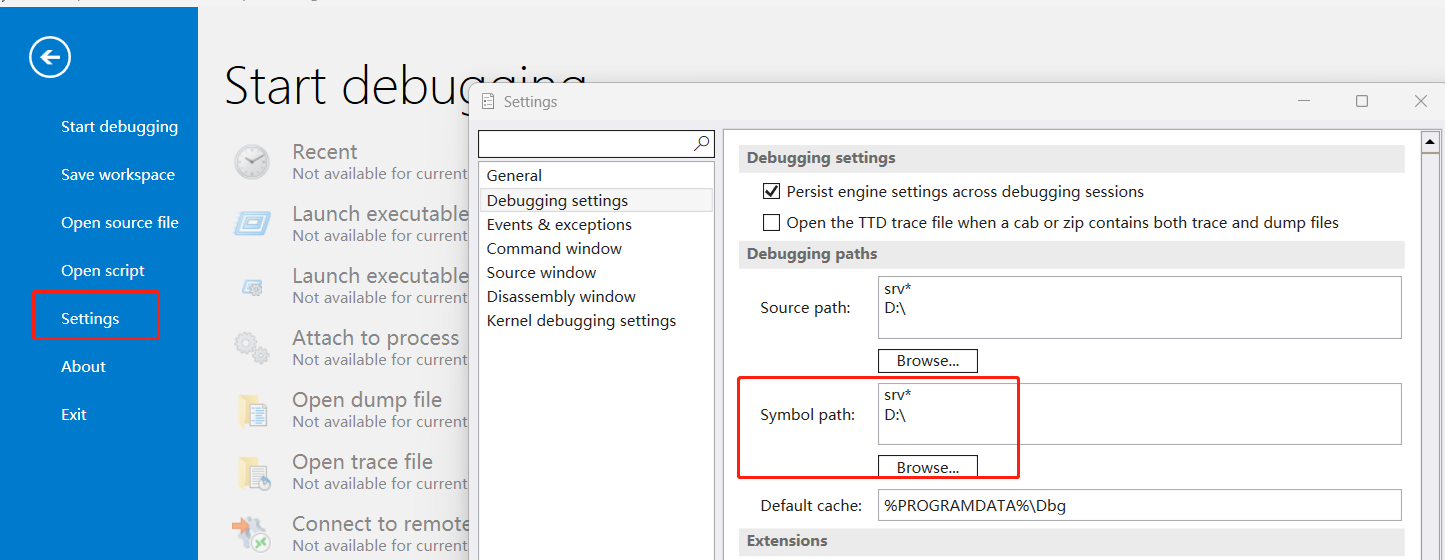 注意将pdb文件放到符号目录下,例如我这里配置的是D盘: