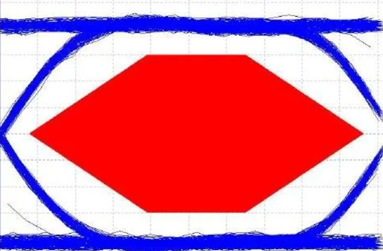 由于它长的像眼睛所以就叫做眼图。它叠加了无数的波形数据,可以看出整体的信号质量。眼睛线条越清晰,形状越标准质量就越好,有时候会在眼图中间放个对比框确认眼图是否合格: